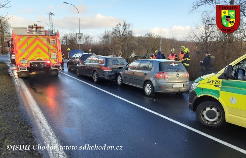13.2.2026 - dopravní nehoda 3 vozidel v Chodově ulice Karlovarská