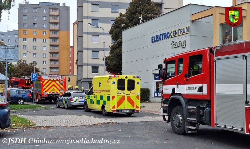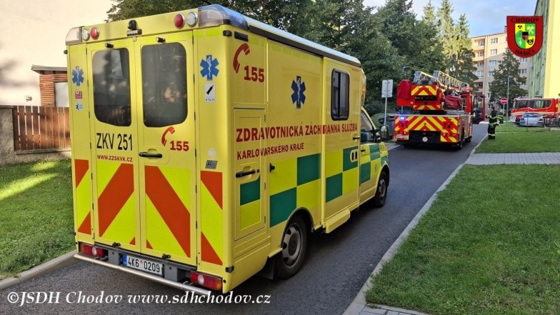 23.9.2025 - zásah složek IZS v ulici Náměstí ČSM v Chodově